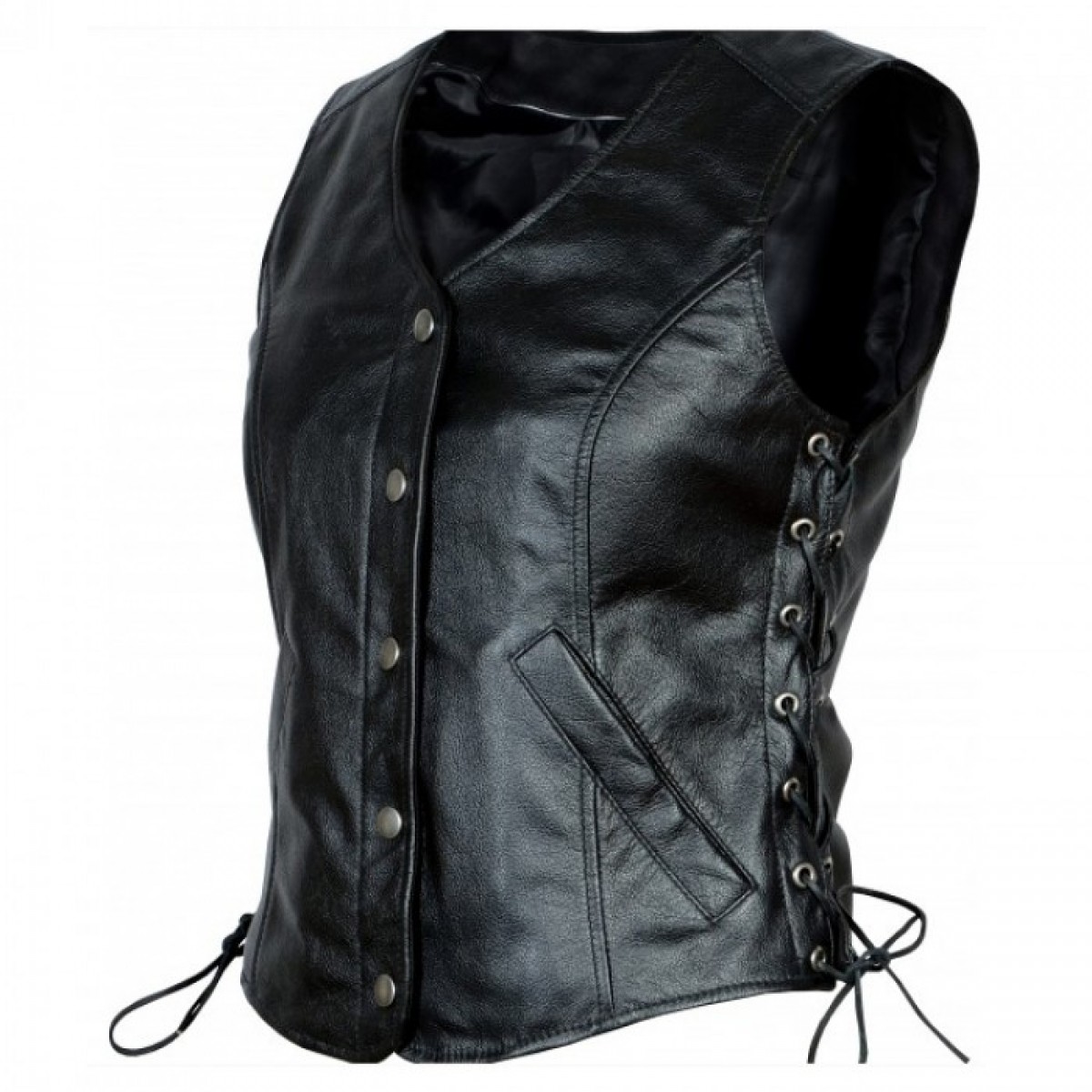 Women Leather Motorcycle Vest With Side Lace And Concealed Carry Pockets Milled 1.1-1.2mm Cowhide.